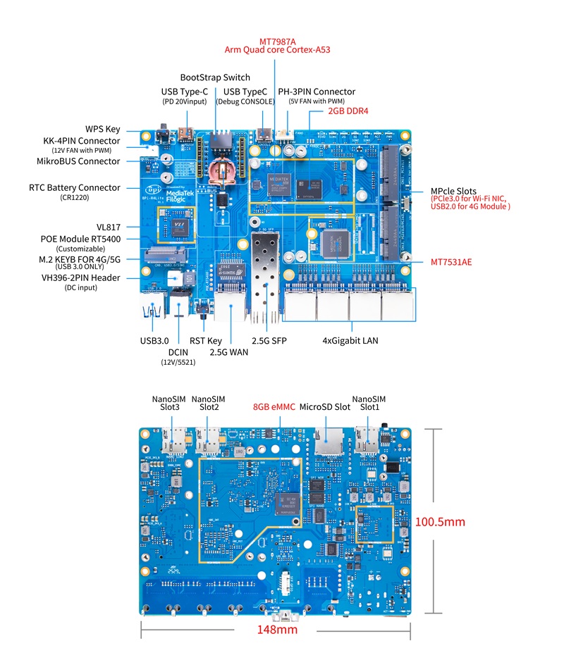 * MediaTek MT7987A Quad-core Arm Cortex-A53