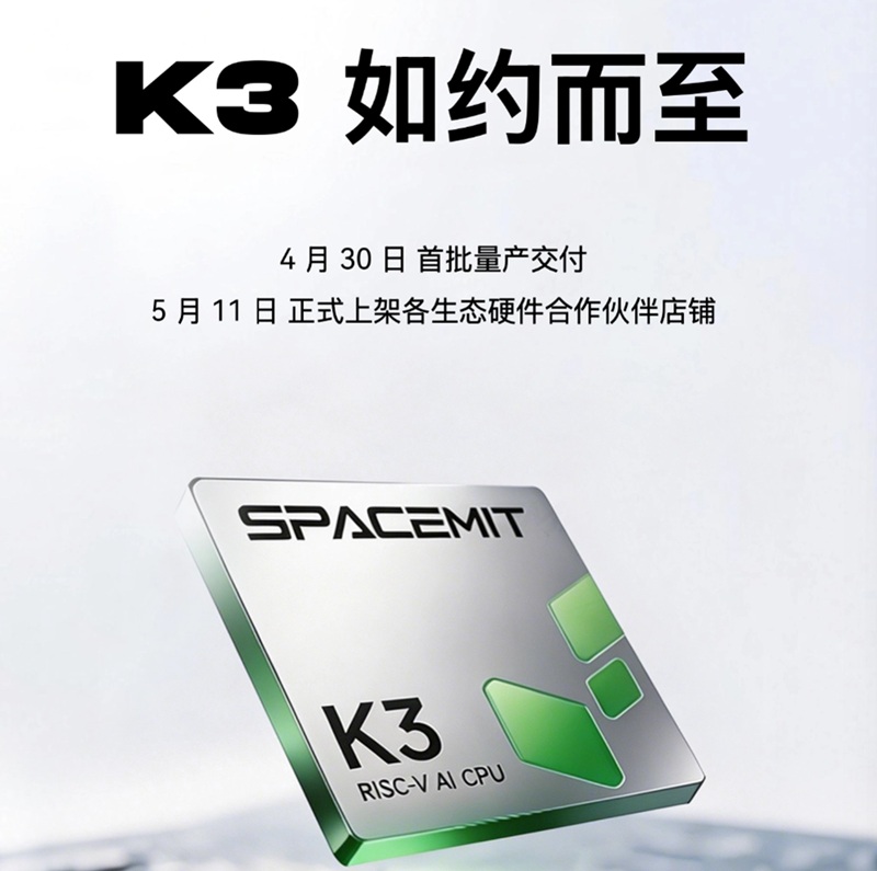 进迭时空 RISC-V AI CPU 芯片 K3 现已正式量产交付,打通从技术研发到规模化商用全链路,为 AI 计算机、智能机器人等高端应用场景,提供可大规模落地的原生算力底座。